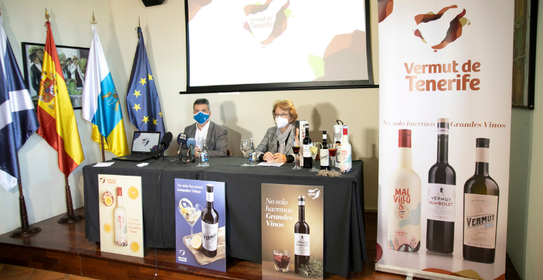 El Cabildo de Tenerife, a través del Área de Agricultura, Ganadería y Pesca, impulsa el proyecto Vermuts de Tenerife, que tiene como objetivo fomentar la diversificación de la oferta del sector vitivinícola de la Isla. El consejero insular Javier Parrilla y la responsable de la Unidad de Enología del Servicio Técnico de Calidad y Valorización Agroalimentaria del Cabildo, María Hontoria Fernández, presentaron ayer la iniciativa en la que participan tres bodegas tinerfeñas que han elaborado y comercializado vermuts: la Bodega Comarcal del Valle de Güímar, con Brumas de Ayosa; la Bodega Lacasmi-Sociedad Cooperativa Agrícola San Miguel, con Malvillo; y Bodegas Insulares de Tenerife, con la marca Humboldt.