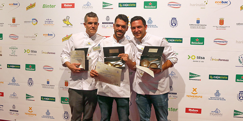 Eduardo Domínguez de León (Tenerife) se convirtió esta noche en el gran triunfador del 12º Campeonato Regional Absoluto de Cocineros de Canarias–Gran Premio GastroCanarias 2016–Gran Premio Cabildo de Tenerife, certamen que se incluye en el III Salón Gastronómico de Canarias-GastroCanarias 2016. El chef mereció la máxima puntuación del jurado con sus dos elaboraciones (cherne con espuma de su brandada, salsa verde, berro y chicharrón marino; y pulpo en caldo intenso papita confitada, cebolla encurtida y toques cítricos) y se llevó el trofeo y diploma de ganador y el premio de 1.500 euros. El segundo puesto, dotado con 1.000 euros, fue para Joao Enrique Faraco Fajardo-Amaral (Lanzarote) y el tercero, de 500 euros, fue para Abel Ferrándiz González (Tenerife). El premio al mejor ayudante, dotado con 300 euros, fue para Eduardo García Sainz (Lanzarote). El presidente del Cabildo de Tenerife, Carlos Alonso, presidió la entrega de premios, que contó, entre otras autoridades, con la asistencia del consejero regional de Agricultura, Ganadería, Pesca y Aguas, Narvay Quintero; y el consejero del Área de Agricultura, Ganadería y Pesca del Cabildo de Tenerife, Jesús Morales.