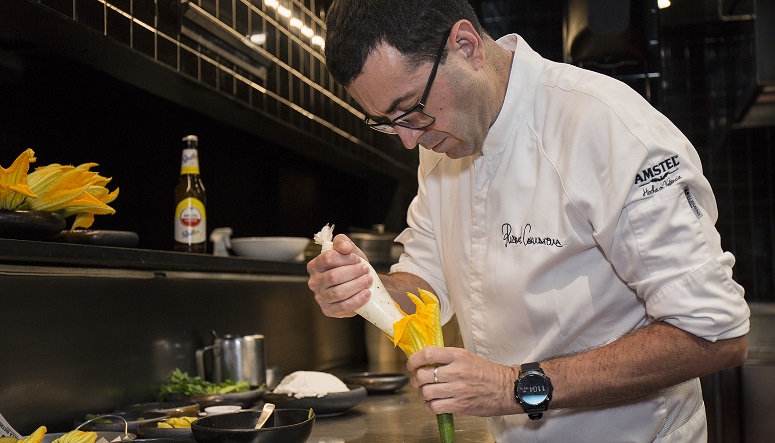 El chef Ricard Camarena, en plena elaboración de su receta, maridada con Amstel Radler.