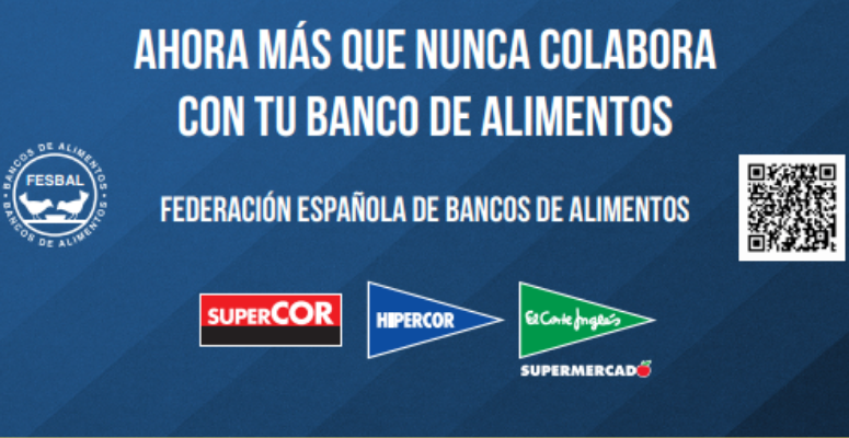 Este año por seguridad, eficiencia, facilidad y sostenibilidad, El Corte Inglés no recogerá alimentos en tienda. Además, al pasar por caja no olvides hacer tu donación. Puedes escoger la cantidad que desees, desde 1 euro hasta 50 euros, y añadirla al importa de tu compra.
