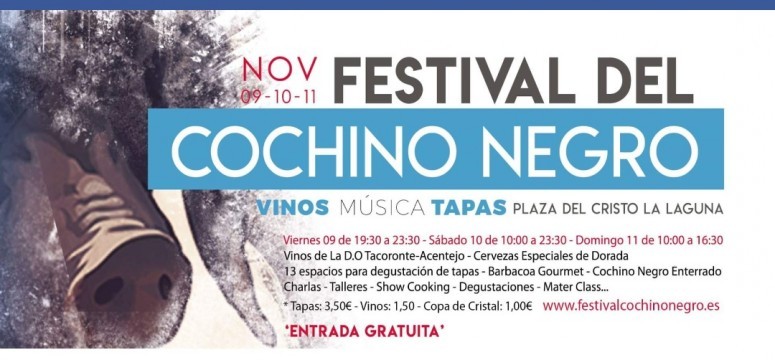 El Festival del Cochino Negro, feria dedicada a esta raza autóctona de Canarias, se saboreará del 09 al 11 de noviembre en la ciudad Patrimonio de la Humanidad, San Cristóbal de La Laguna; y tiene como objetivo aproximar este preciado manjar a la cultura gastronómica regional.