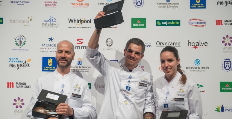 El ganador presentó como plato común “Solomillo de carnicero en praliné salado, caldo corto vegetal, chicharrones garrapiñados, papa y batata” y como plato libre “Moqueca de calamar”, elaboraciones que decidieron a su favor el primer premio, dotado de trofeo y diploma, además de 1.500 euros y de un coravín obsequio de la empresa Excelsia Canarias.