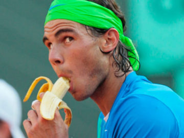 Así, uno de los productos estrellas en la dieta deportiva de Rafa Nadal es el plátano. En infinidad de ocasiones lo hemos visto comer un plátano durante el descanso de un partido para recuperar energías. El plátano es un alimento rico especialmente en potasio y vitamina C, dos elementos esenciales para la actividad deportiva.
