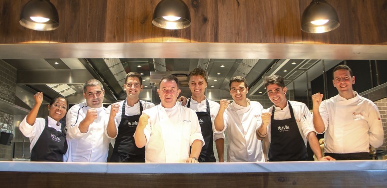 Justamente en este último restaurante, el Melvin, que abrió sus puertas a finales de 2017 como un establecimiento de cocina mediterránea con reminiscencias a San Sebastián y a la cultura de los asadores, se celebró recientemente un desayuno de trabajo para supervisar la oferta de su carta y dar apoyo a su equipo, el más joven de las cocinas de Berasategui.