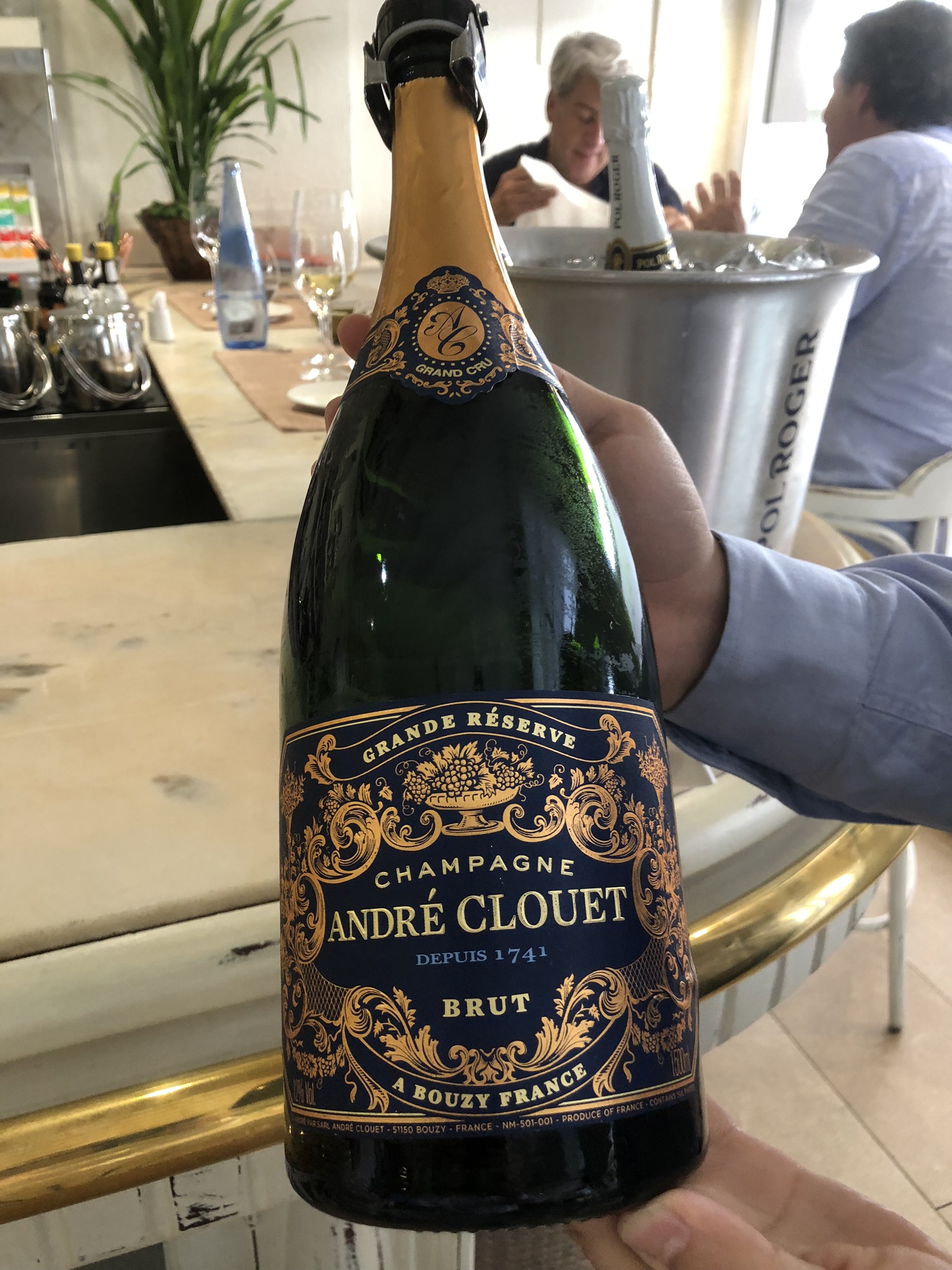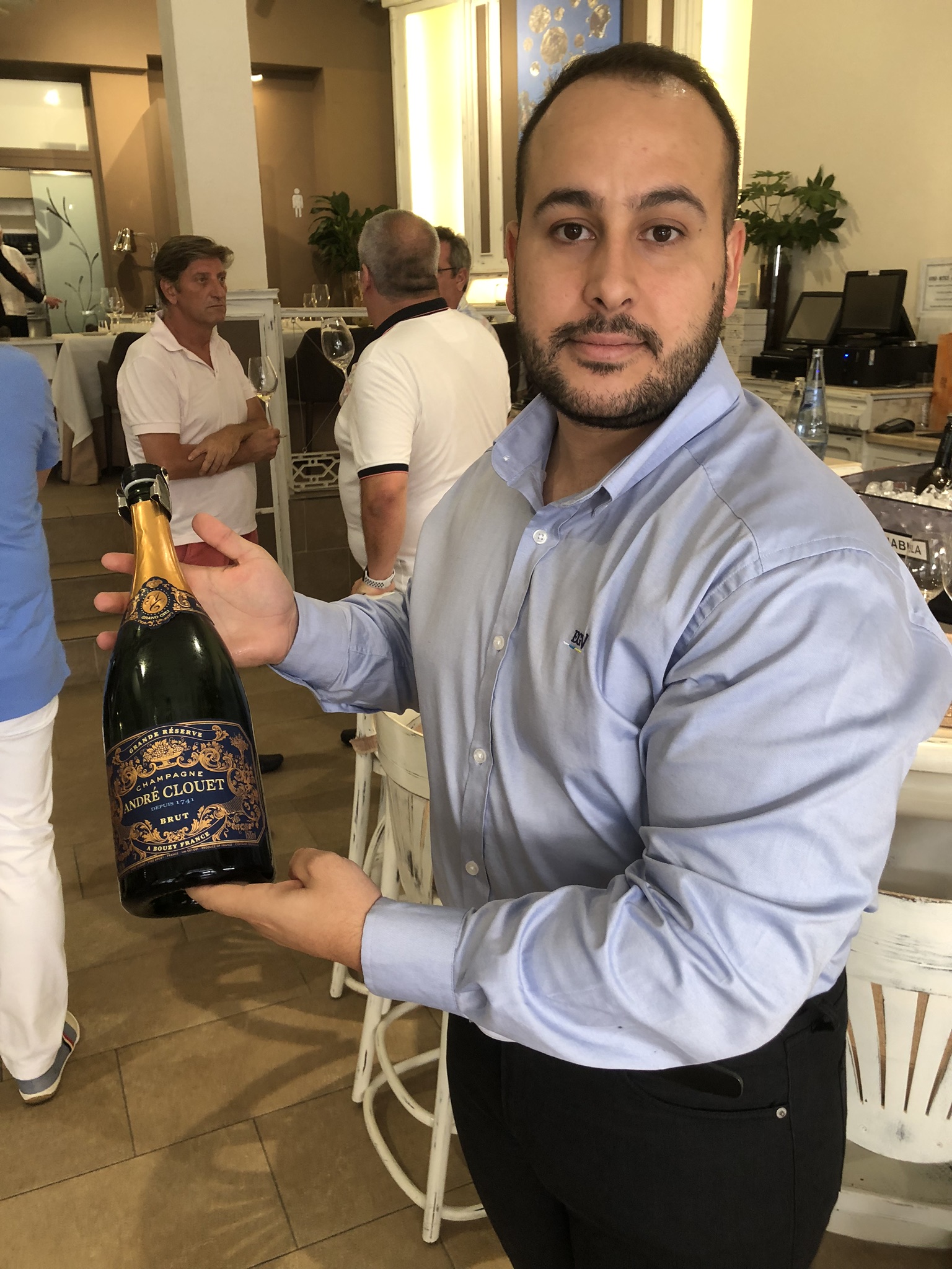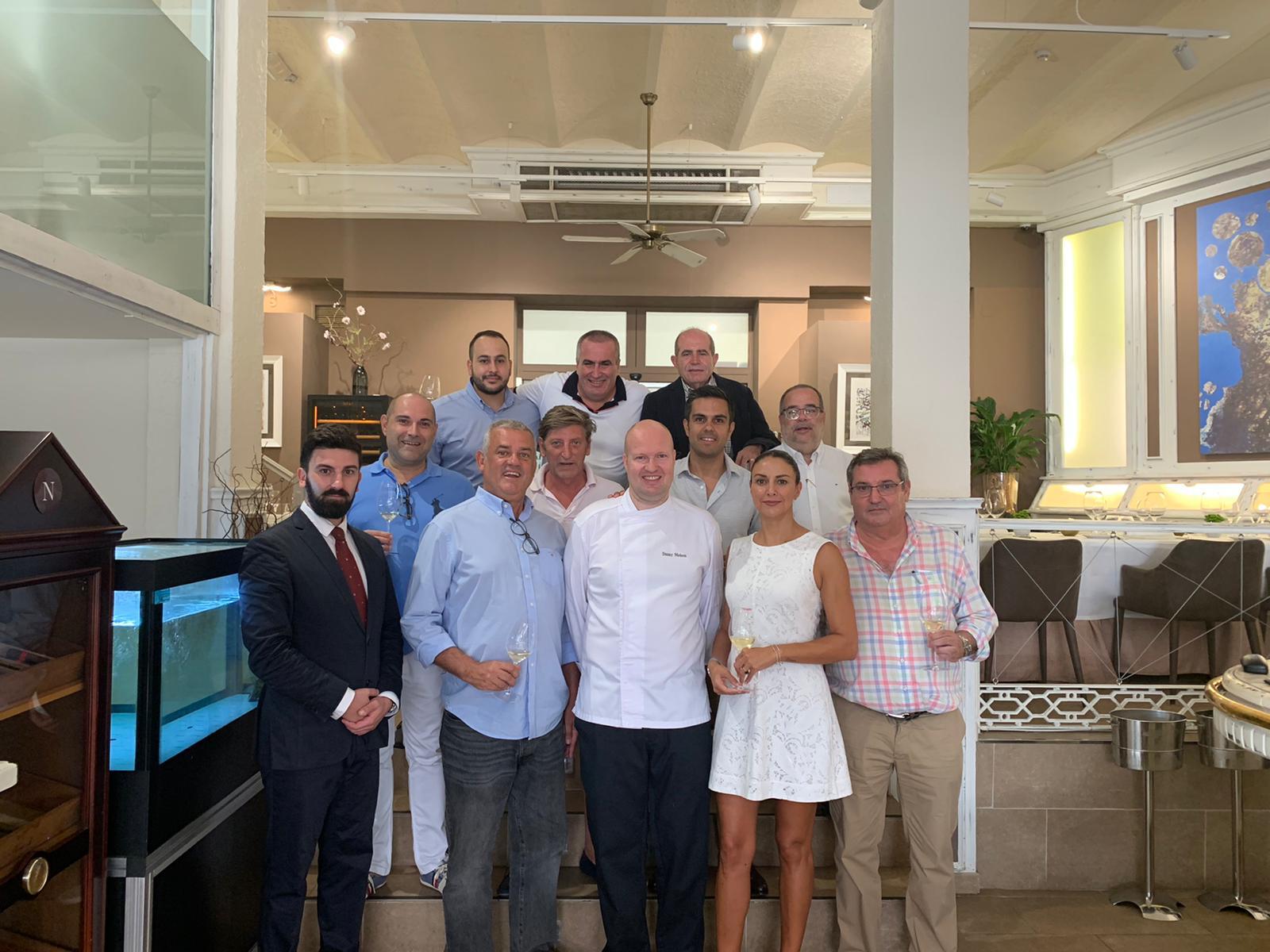 El recibimiento en el restaurante y estos primeros tras aperitivos fueron acompañados por un champagne grand cru, como es el magnífico brut André Clouet Grande Réserve (presentado en botella Magnum), que fue comentado por Cristian Lorenzo Álvarez, experto profesional del equipo de la vinoteca El Gusto por el Vino, que lidera su propietario, Antonio “Toño” Armas Febles.