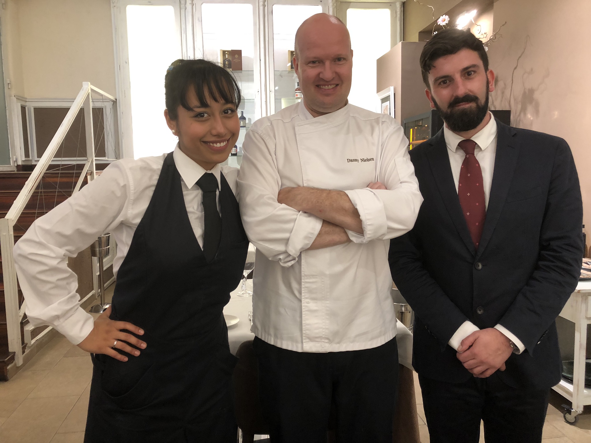 Antes de finalizar y porque es de justicia, hay que reconocer y valorar públicamente la profesionalidad de todo el equipo de Cocina y Sala, que cada día trabaja con esmero del NIELSEN Restaurante. Es de destacar el liderazgo en los fogones del jefe de cocina, el chef Danny Nielsen, así como el de Aniceto Manotas, como nuevo jefe de sala. En la misma, debo destacar la amabilidad y permanente sonrisa de la profesional Daniela Salazar, experta en quesos y en un servicio dinámico, eficiente y eficaz. Y no podemos olvidar la importante y muy efectiva labor de Pilar Acosta en el servicio de Comunicación y Relaciones Públicas, que permanentemente mantiene muy bien informada a la clientela del NIELSEN Restaurante.