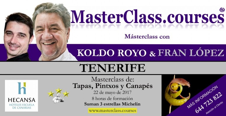 Los profesionales y amantes de la gastronomía en Tenerife, Gran Canaria y Canarias en general (especialmente los que trabajan o están interesados en Tapas, Pinchos y Canapés) tienen una oportunidad única y, por supuesto, una gran cita para aprender en nuestra propia tierra de los conocimientos y experiencia de Koldo Royo y Fran López, dos grandes chefs que llevan una gran trayectoria a sus espaldas y quienes ofrecerán una única y exclusiva masterclass en Santa Cruz de Tenerife y en Gran Canaria.