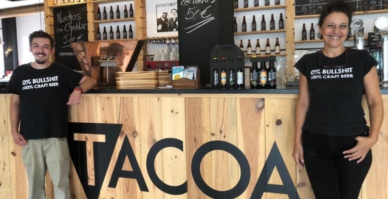 Antes estaba como más antigua la fábrica artesana Naturbier (también cervecería) en la madrileña plaza de Santa Ana, pero lamentablemente hace ya más de un año que cerró sus puertas. Ahora la “decana” es Tacoa, con la desinquieta Teresa Queipo, que está acompañada por su hijo, Eric Del Toro Queipo, que ejerce de director comercial del proyecto familiar, y por Jaime Boluda, un joven maestro cervecero valenciano formado en la Universidad Técnica de Berlín y que, después de estar completando su formación y trabajando por varios países, ha escogido Tenerife y el proyecto de Tacoa, para desarrollar todos sus conocimientos y experiencia, siempre con el curioso y simpático lema y eslogan de Tacoa: “0% Bullshit – 100% Craft Beer” o, lo que es lo mismo, en castellano, “0% Cuento – 100% Cerveza artesana”.