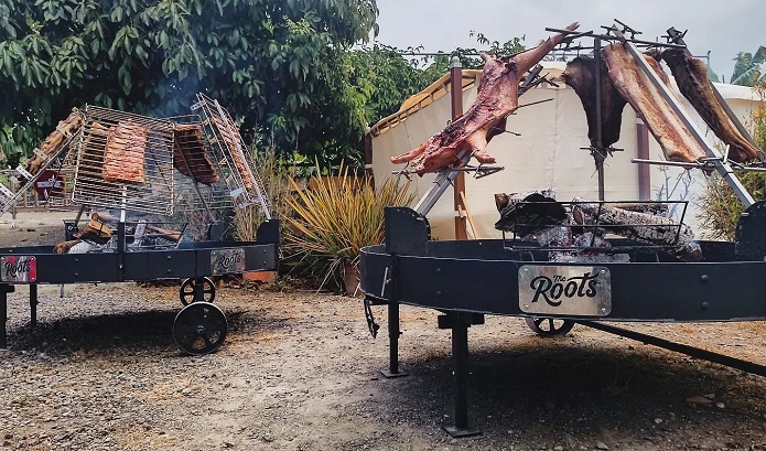El tradicional «Asado en Cruz» típico de Argentina, que cada domingo se elaboran en The Roots.