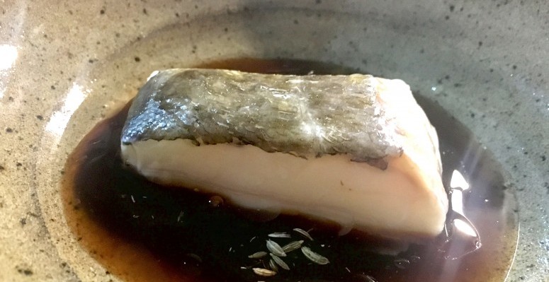 Bacalao con jugo de tuétano de cochino negro y flor de hinojo silvestre