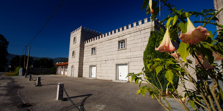 Fachada exterior de la bodega Señorío da Torre, en Rías Baixas (Galicia)