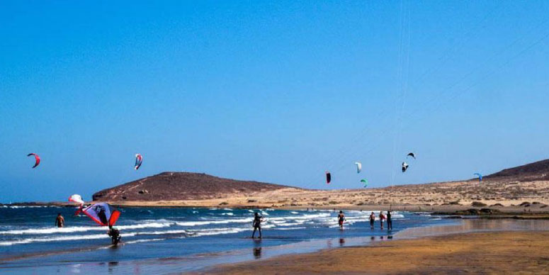 Entre cometas de kitesurf, velas de windsurf y azotado por el incesante viento que lo golpea a diario, El Médano se ha convertido en un reclamo para gente de Canarias y turistas, y posiblemente el único rincón muy nuestro que queda de escapada para deportes acuáticos en el Sur de Tenerife. Su estampa siempre colorida por los “kites” y con la Montaña Roja al fondo, supone una de las instantáneas obligatorias de la Isla.