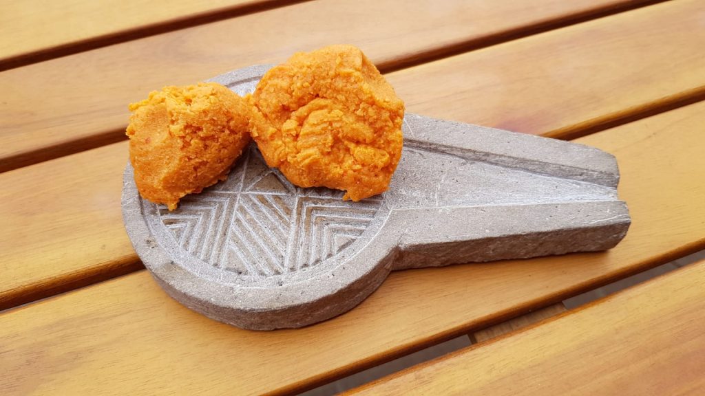 El almogrote es una especie de pasta típica de La Gomera que se hace para aprovechar el queso excesivamente curado. Se unta en pan bizcochado y es un aperitivo estupendo para acompañar unos vasos de vino. Se trata de una de las tapas que han cruzado las fronteras insulares y ya es conocida, y servida, en todo el Archipiélago. En los diccionarios españoles no figura la palabra almogrote, que debe ser una corrupción de almodrote: salsa hecha con aceite, ajo y otros Ingredientes. Se elaboraba siempre en mortera –el almirez de madera basto y con mango, típico de la Isla Colombina-, pero, al contrario que los mojos que han de majarse siempre a mano para que conserven su personalidad, el almogrote puede hacerse en batidora siempre y cuando las cuchillas del aparato tengan la fortaleza suficiente para enfrentarse a la dureza del queso.