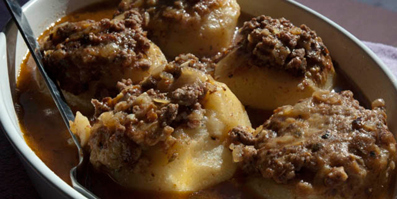 Un manjar de carne y papa, son nuestras “Papas rellenas al estilo canario”. Lejos de mezclar, se rellena la papa con carne. En el Archipiélago se consiguen conjugar los sabores de nuestra papa con la textura de la carne de ternera, todo con la profundidad que da la salsa y la fritura, también al estilo canario.