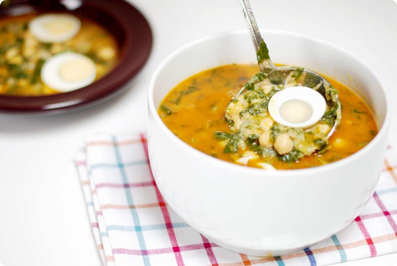 bacalao, espinacas, etc.) y se incorpora medio huevo duro por comensal.